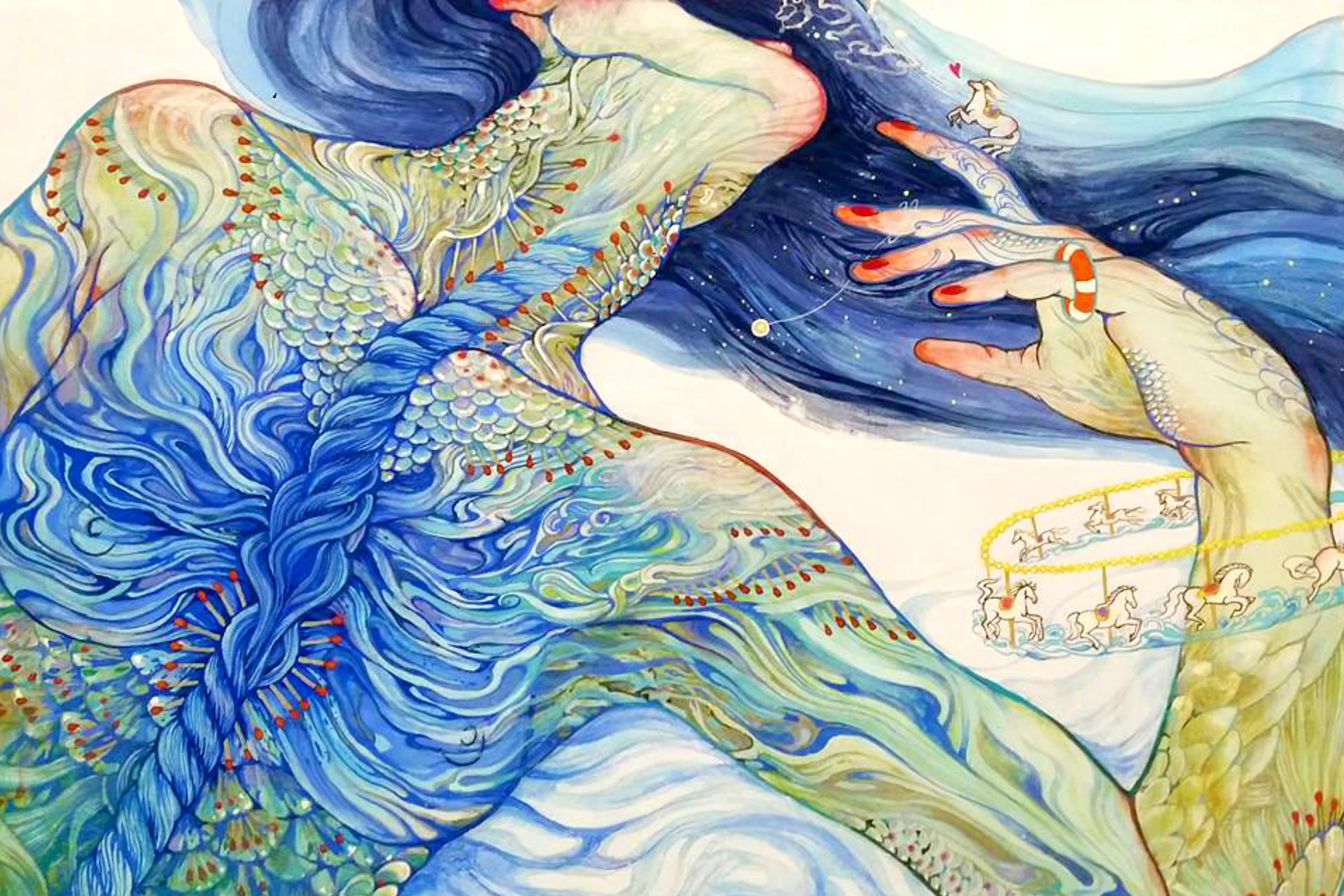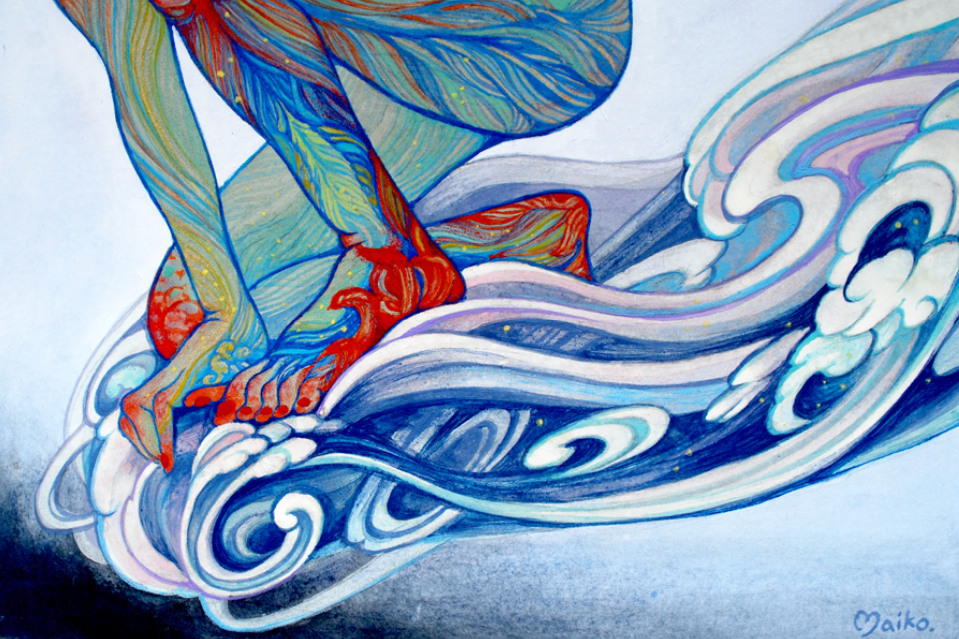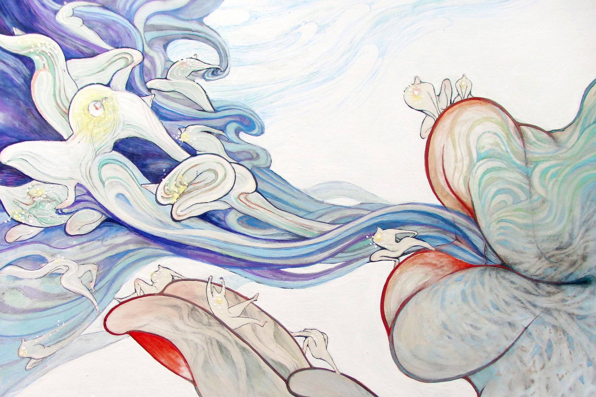 After graduating Joshibi University of Art and Design Junior College, she transferred to Tama Art university BFA in Japanese Paintings as junior and finished MFA in 2012. Her specialty is Japanese paintings using mineral pigments on Japanese papers. Currently, she is putting exhibition around Tokyo and also making a lot of effort to create “new collaboration” such as the stage of body painting and dance performance.